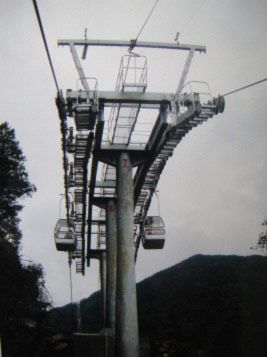This ropeway was commenced in July 2003, and completed in April 2004. It is of the monocable circulating 2-passanger cabinlift type (with fixed grips), with the horizontal distance of 2,226.285 m, elevation difference of 1,078.7 m and one-way transport capacity of 300 people / hour.